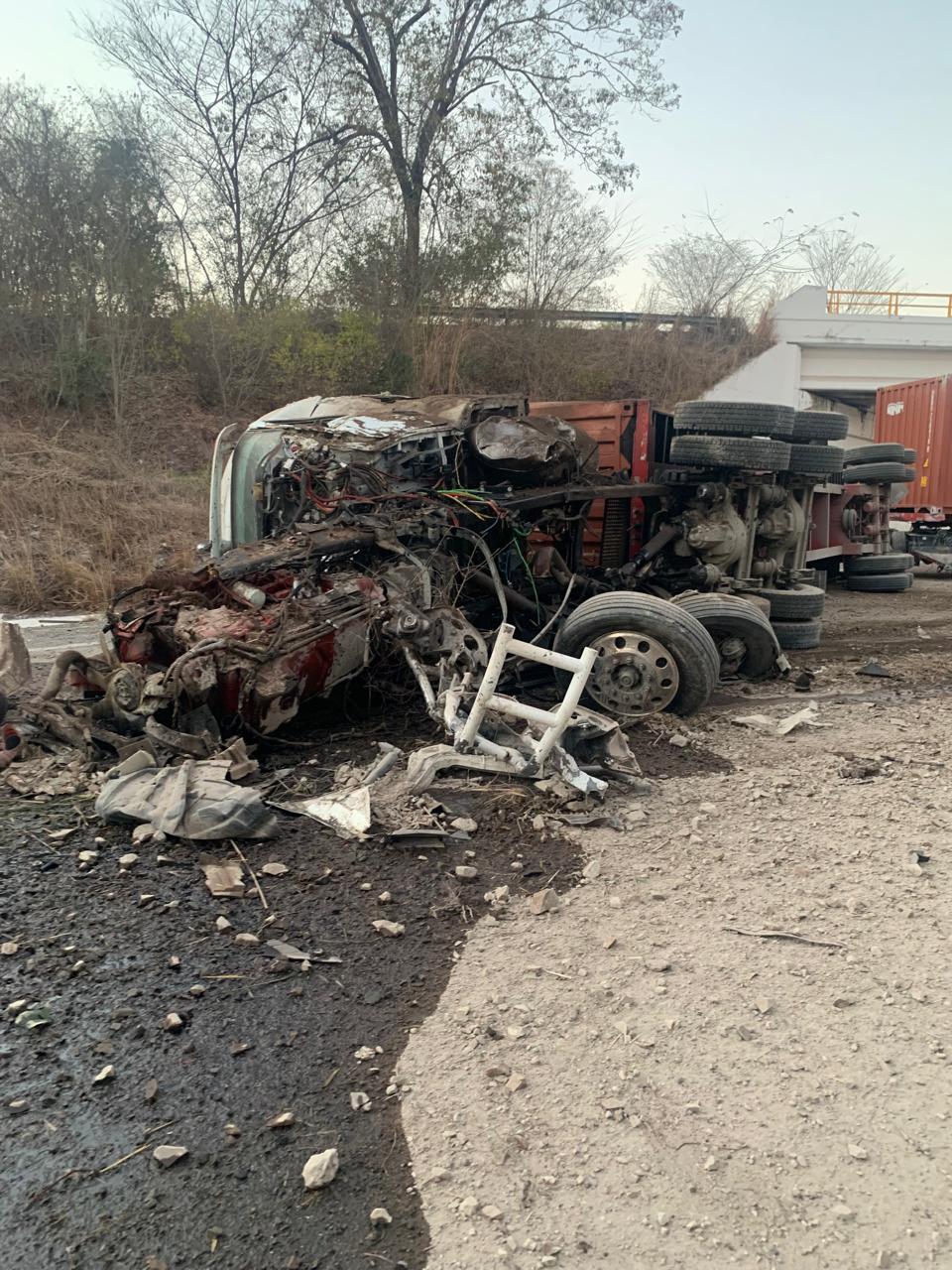 Cerca de las 19:30 horas, usuarios de dicha vialidad encontraron bloqueado el paso en el kilómetro 280 del tramo carretero Las Cañas Feliciano, donde un tractocamión con cabina de color blanco acabó con el frente destrozado y volcado, por lo que pidieron ayuda.