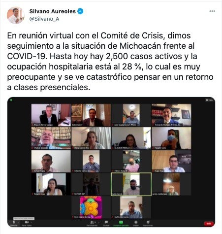 A través de su cuenta de Twitter, el mandatario michoacano indicó que las condiciones de salud por la pandemia de la enfermedad Covid-19, no son las óptimas para que los niños y jóvenes regresen a las aulas, al menos en la fecha indicada por el gobierno federal, que es el 30 de agosto.