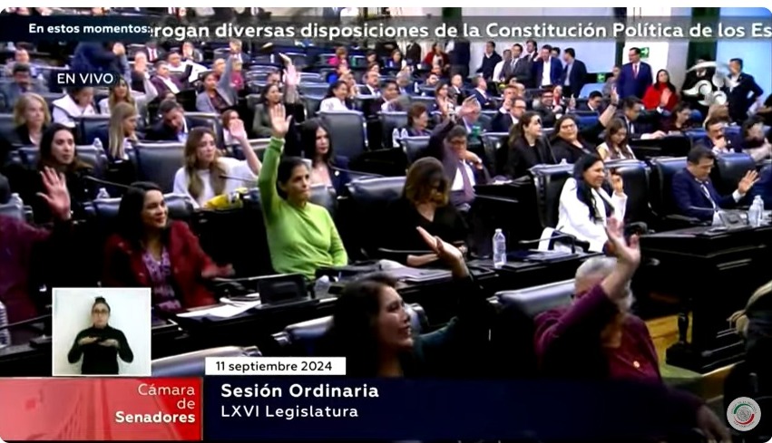 La votación final fue de 86 votos a favor por 41 en contra, y con esa aplanadora se estrena la nueva maquinaria obradorista que tiene en fila varias otras reformas a la Constitución Política, en las cuales se perfila un escenario similar al de anoche en el Senado.