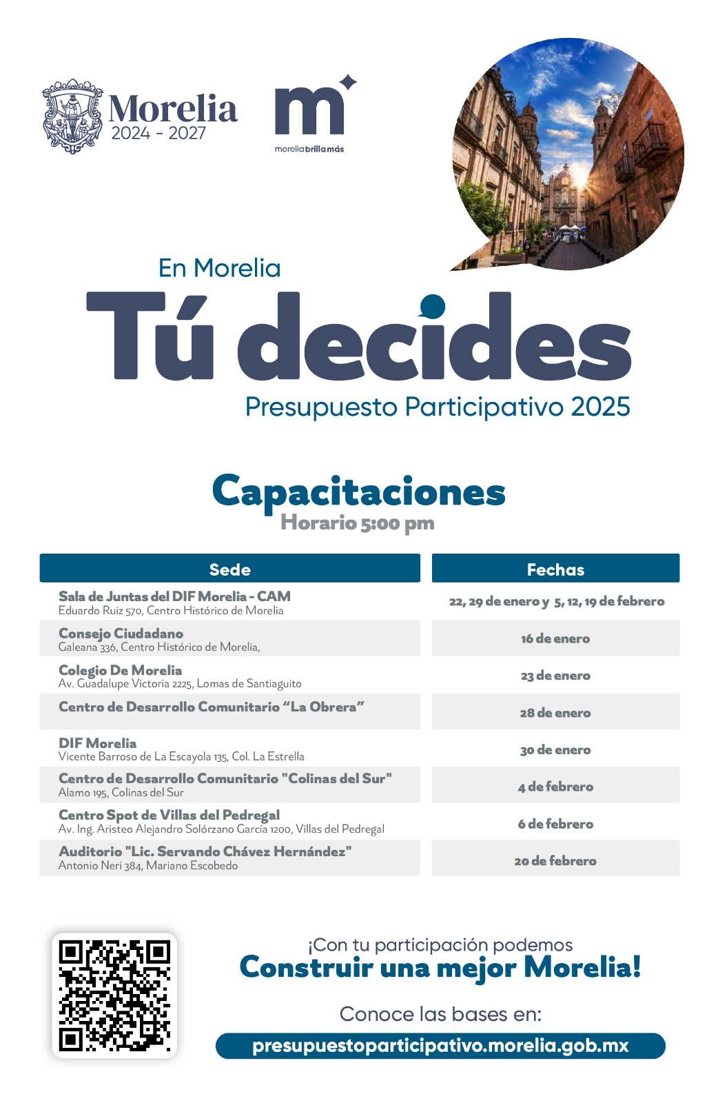 Con el objetivo de seguir recibiendo una gran e informada participación de parte de la ciudadanía, el Gobierno del Presidente Municipal de Morelia, Alfonso Martínez Alcázar, invita a morelianas y morelianos a formar parte de las capacitaciones del Presupuesto Participativo 2025.