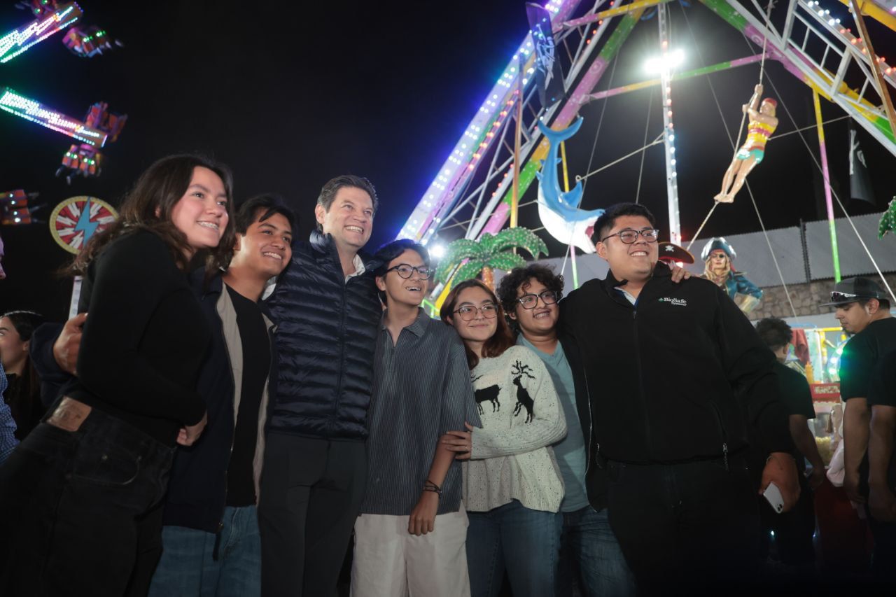 Posteriormente, se trasladó a la zona de los juegos mecánicos, para tomarse selfies con decenas de jóvenes que al verlo, lo saludaron y sacaron sus celulares para capturar una imagen del Presidente Municipal.