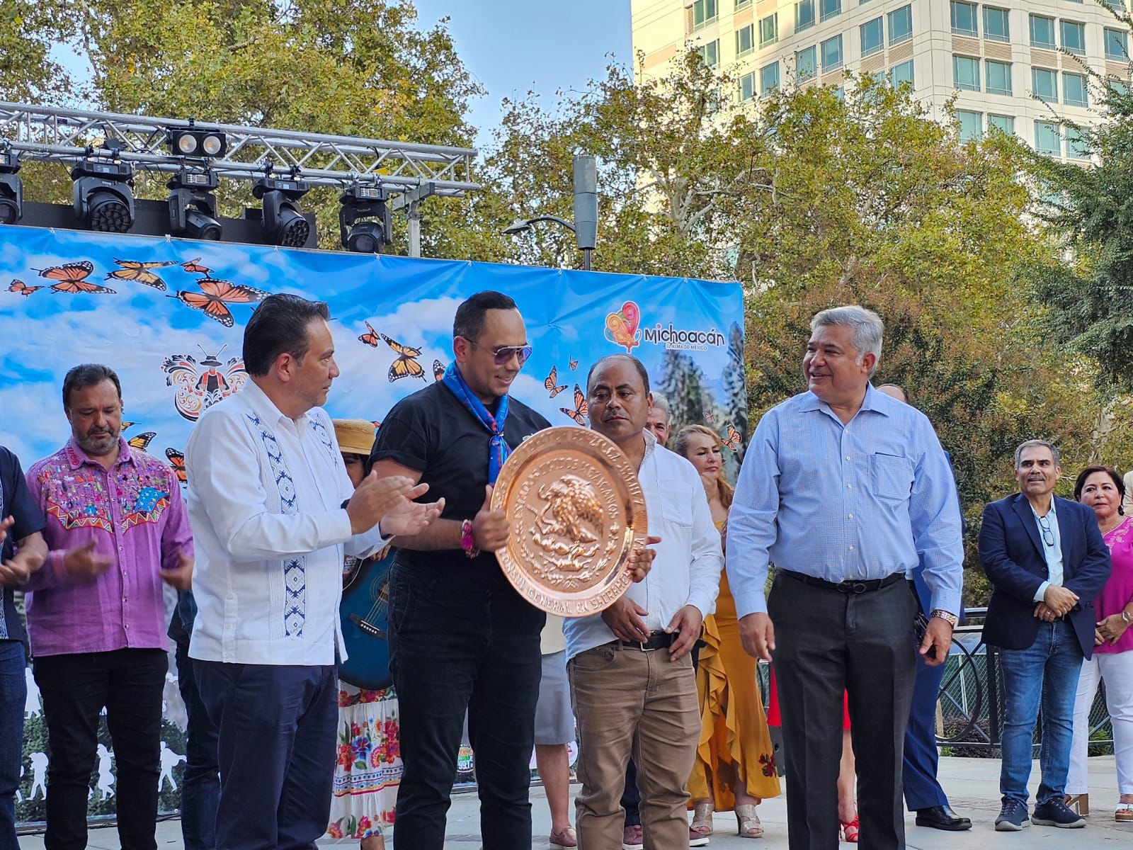 En el marco del Festival “Raíces Monarca”, dedicado en esta edición a los estados de Michoacán y Jalisco, y, en representación del Congreso del Estado, Magaña de la Mora hizo una respetuosa solicitud al Cónsul General de México en Sacramento, Christian Tonatiuh González Jiménez, en torno a las citas para trámites consulares.