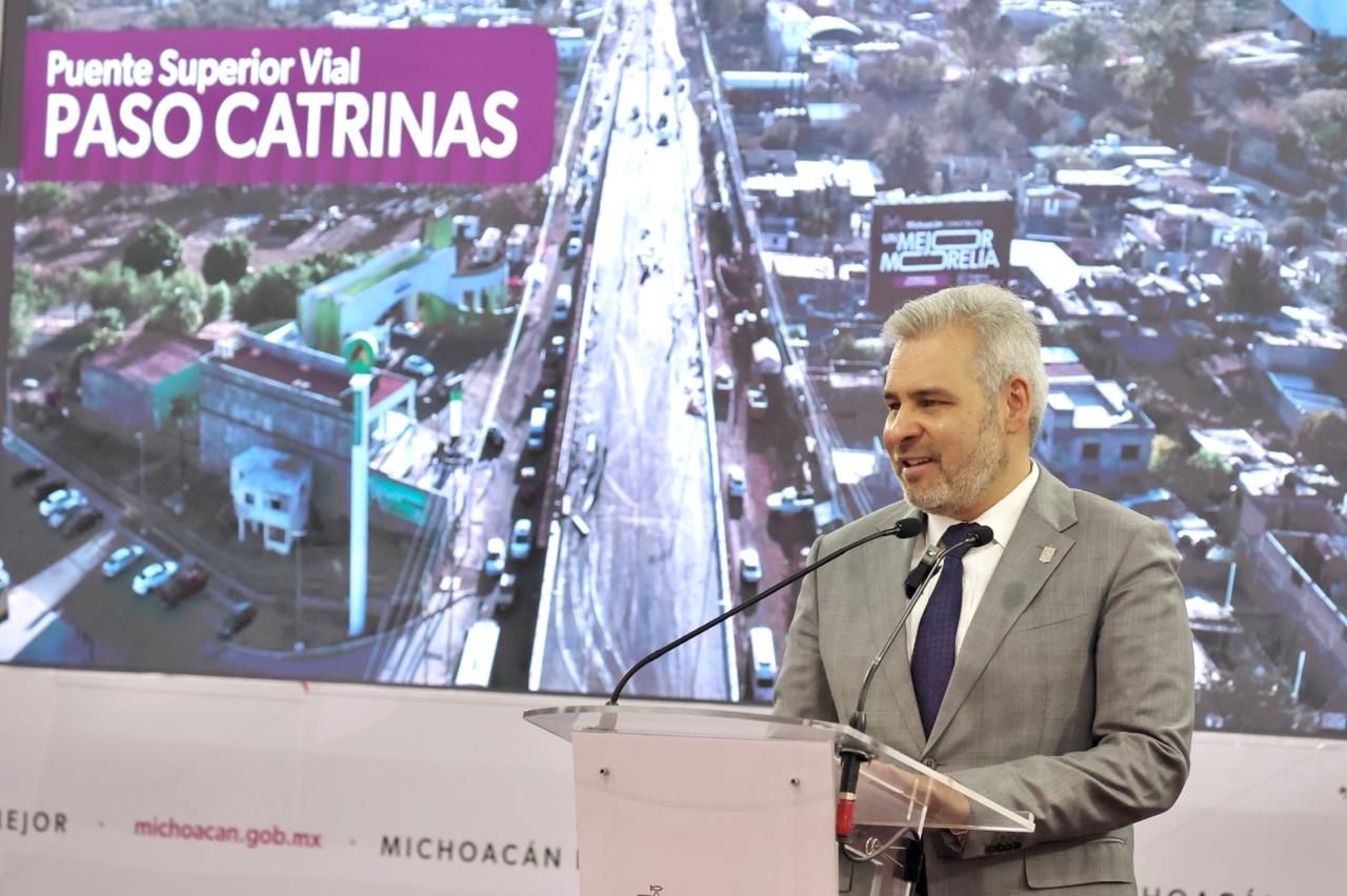 El gobernador Alfredo Ramírez Bedolla anunció que esta noche quedarán abiertos a la circulación vehicular los carriles centrales del paso superior vehicular Catrinas, que se construye en Morelia a la altura del fraccionamiento Villas del Pedregal.