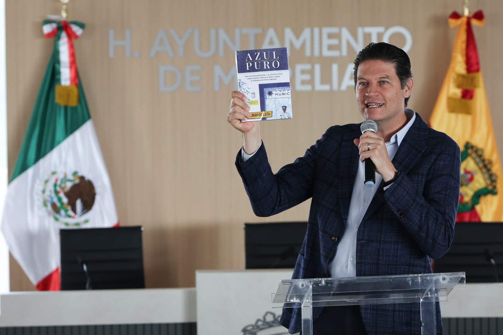 Bernardo León compartió que escribió “Azul Puro” porque no existía bibliográfica específica para policías municipales, además que incluyó un reconocimiento a la voluntad de Alfonso Martínez en materia de seguridad y justicia cívica.