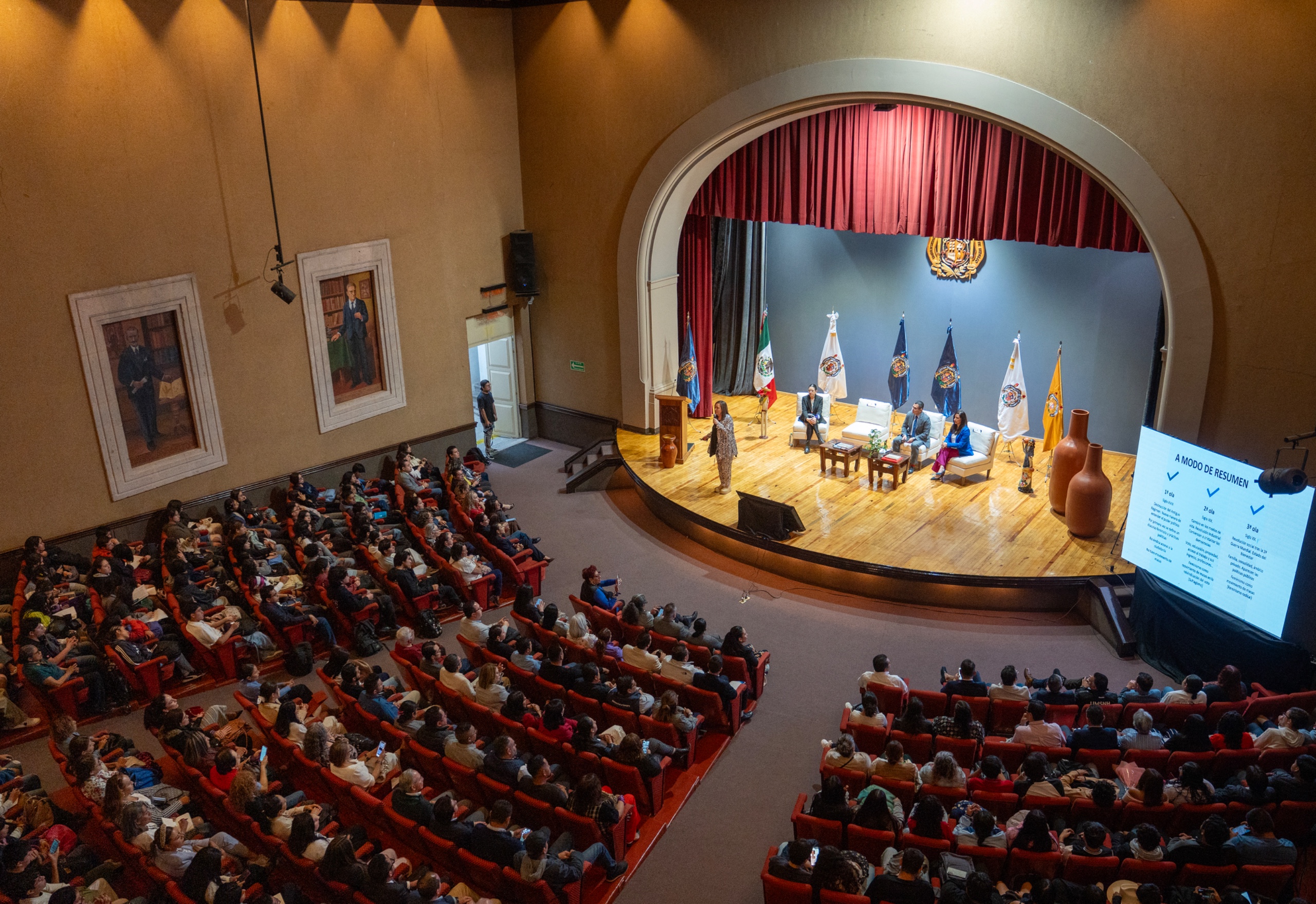 Frente a un abarrotado recinto, la especialista en temas de género, agradeció la invitación a la UMSNH en vísperas del 8 de marzo, al respecto, afirmó que son las nuevas generaciones quienes tienen la posibilidad de formarse, de informarse, y de tener un pensamiento crítico, “y eso es lo más importante, en un mundo complejo, tener un pensamiento crítico y saber diferenciar las mentiras patriarcales de la realidad de la vida de las mujeres”.