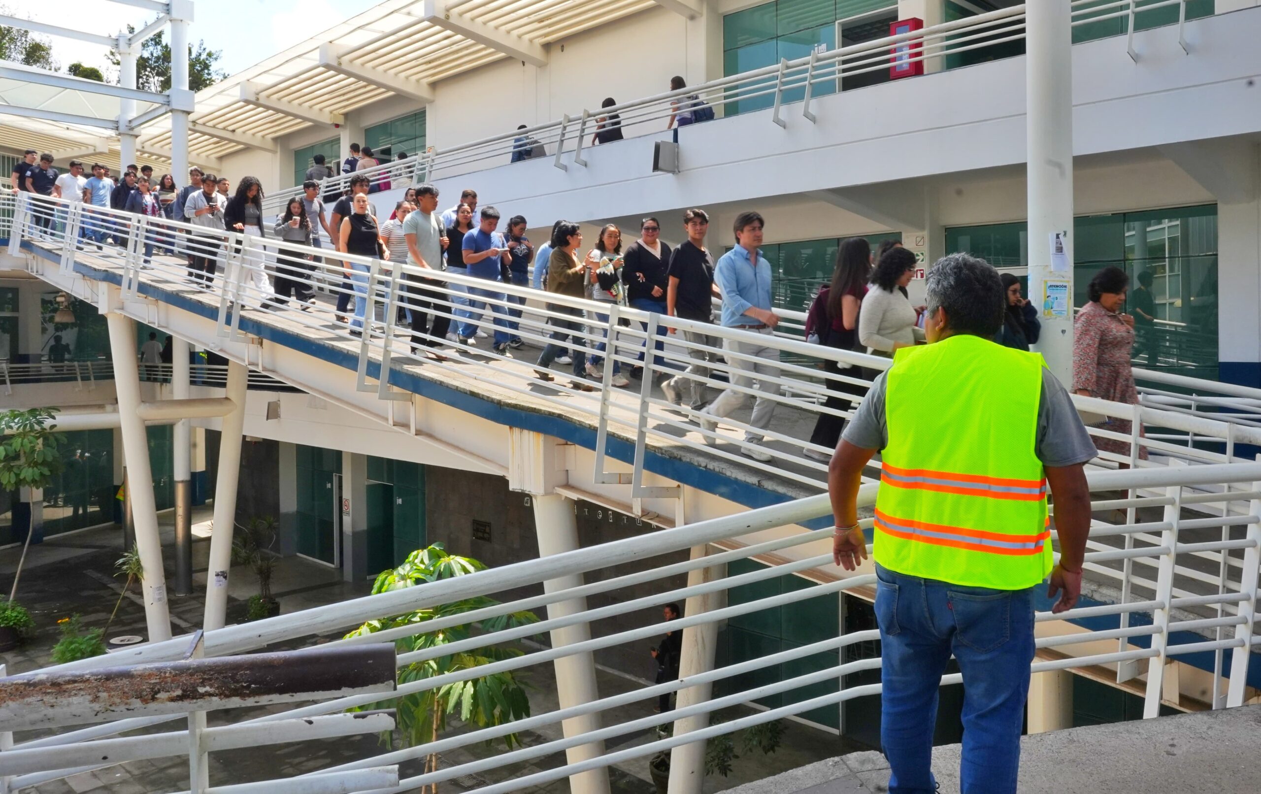 Fue en punto de las 12:00 horas cuando se activaron las alarmas, dando paso a la evacuación de manera pacífica y ordenada de estudiantes, profesores, profesoras y personal administrativo de los edificios universitarios, para dirigirse al punto de encuentro designado para cada dependencia.