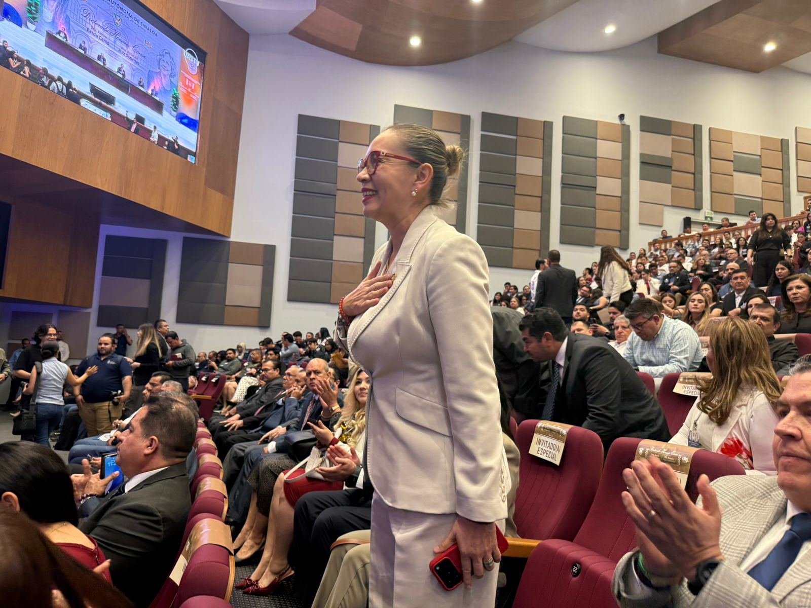 Durante la sesión solemne del Consejo Universitario de la UAS se contó con la presencia del gobernador del Estado de Sinaloa y exrector de la UAS, Rubén Rocha Moya, del rector de la Universidad Autónoma de Sinaloa, Jesús Madueña Molina, de la secretaria general, Nidia Yuniba Brun Corona, así como del secretario General Ejecutivo de la Asociación Nacional de Universidades e Instituciones de Educación Superior (ANUIES), Luis Armando González Placencia.